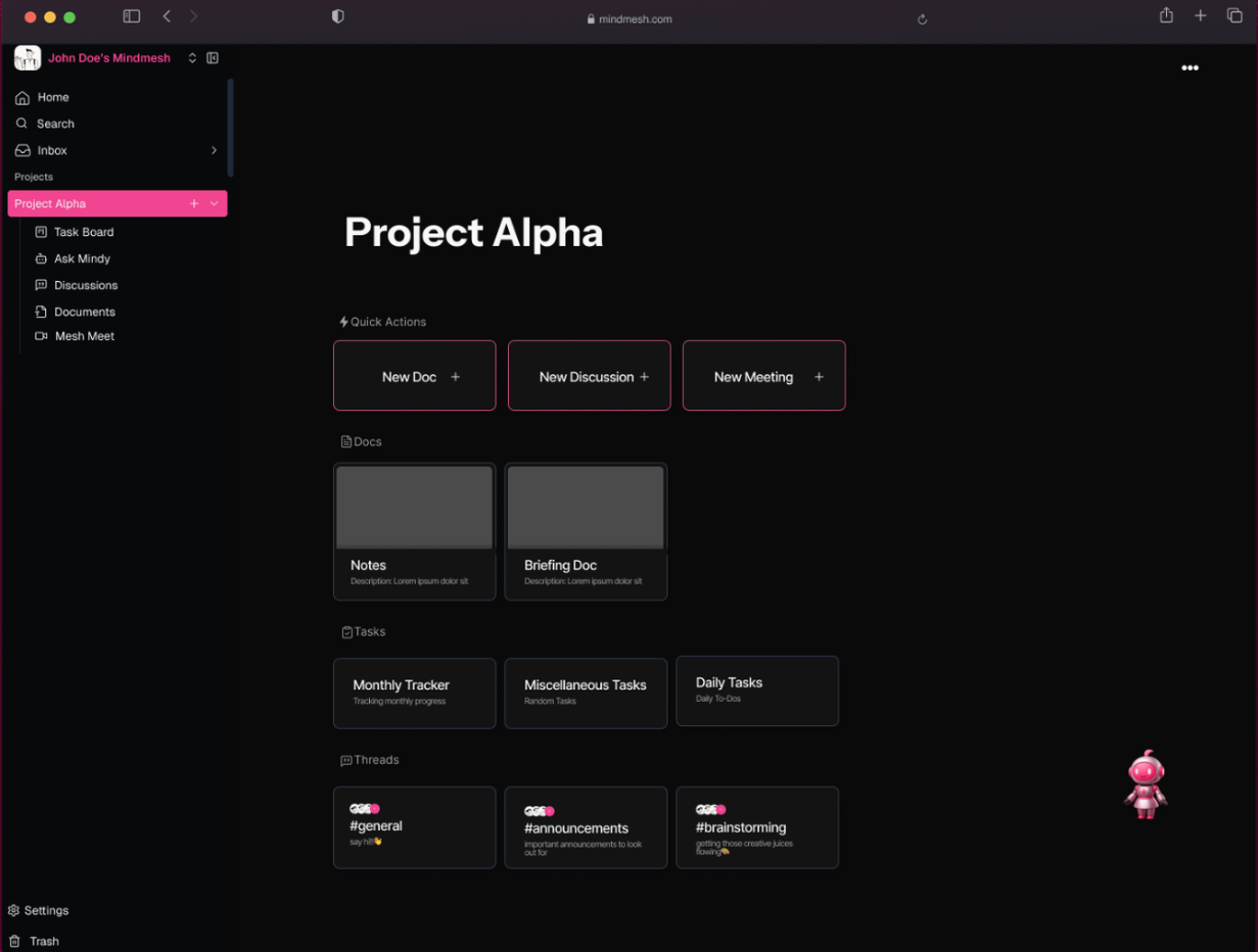 Think Notion + Slack + Google Meet + Fireflies AI combined into a single app, with no distractions. No more app switching